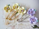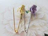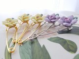 ヴィンテージ 藤色/磁器製・薔薇 カブトピン(Gold)のコピー