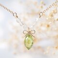 爽やかなグリーンのペリドットを繊細なリボンモチーフで束ねています。