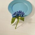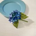 くすみブルーから、マットなブルー、パープルへと七変化の紫陽花のお花を布花のコサージュに仕立てました。