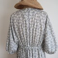 リバティプリントを使用した6分袖のパフスリーブワンピースです