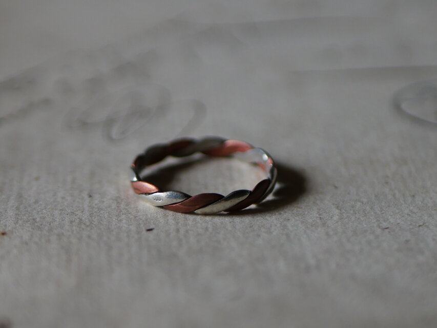 銀と銅がツイストデザインになったヴィンテージリングです。