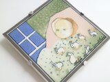 プレートにはベビーハットを被りベッドに横になっている赤ちゃんが描かれています。