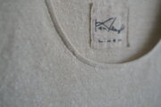 リネン80%、コットン20%のノースリーブのニット。商品名にはアンダーウェアとありますが、襟ぐりは空きすぎず、形も体の線を拾わない編み地と色、デザインパターンのため、カットソーとして着られる方も多いです。