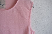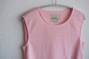 リネン80%、コットン20%のノースリーブのニット。商品名にはアンダーウェアとありますが、襟ぐりは空きすぎず、形も体の線を拾わない編み地と色、デザインパターンのため、カットソーとして着られる方も多いです。
