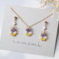 【3点セット】「ビオラの花結」アメジスト×淡水パール/天然石リボンアクセサリー(ピアス/イヤリング・ネックレス)