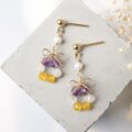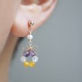 「ビオラの花結」アメジスト×ムーンストーン×淡水パール/天然石リボンアクセサリー(ピアス/イヤリング)