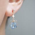 「ネモフィラの花結」アクアマリン×淡水パール/天然石リボンアクセサリー(ピアス/イヤリング)