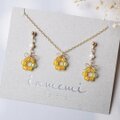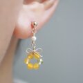 「ミモザの花結」春色×淡水パール/天然石リボンアクセサリー(ピアス/イヤリング)