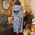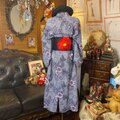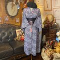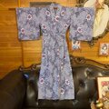 【リップル絞り 浴衣リメイク セミロング ワンピース ドレス 帯サッシュベルト 和洋折衷 レトロ 古着 ハンドメイド 絞り風の細かなドット柄に、華やかな花模様 W-563】