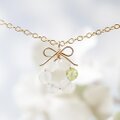【3点セット】「シロツメクサの花結」レインボームーンストーン/天然石リボンアクセサリー(ピアス/イヤリング・ネックレス)