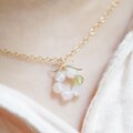 「シロツメクサの花結」レインボームーンストーン×ペリドット/天然石リボンネックレス