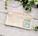 #小花 #ポーチ #小物入れ #刺繍 #帆布 #かわいい #シンプル #名入れ #プレゼント #ペンケース #ファスナー #マチなし #ダブルファスナー #生成り #ワッペン #マルチケース