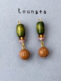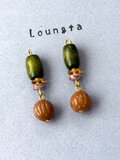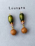 ウッドビーズピアス グリーン ブラウン チェコビーズ エスニックピアス 夏ピアス 樹脂ピアス