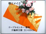 ■華やかなオレンジ地に金糸で片輪車文様です。