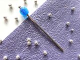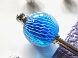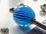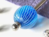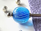 流水の様な水色と白のストライプ模様のとんぼ玉でかんざしを作りました。