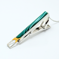 深緑~白の流れる模様が印象的なクリソプレーズのネクタイピン。