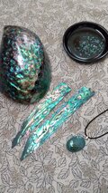 メキシコアワビ貝の美しい物を選んで、一粒一粒貼り付けました。