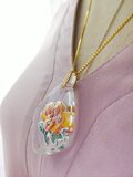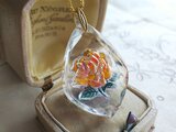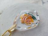 1960年代Germanヴィンテージ、約36×27㎜ほどの朱オレンジ色が入った黄色の薔薇のインタリオGlassペンダントを用いてお作りしましたんネックレスです。