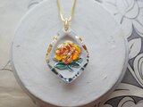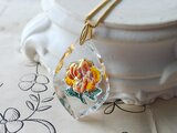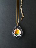 ヴィンテージ 黄・オレンジ薔薇のインタリオ 変形ダイヤ型のネックレス