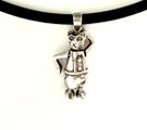 【ビンテージ 北欧製 スターリングシルバー 925 動く ネコ 太目 本革ネックレス】