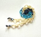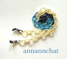 ポリエステルの糸を巻いてつくった サテンのチェーンのように見えるチェーンで とても軽いメガネチェーンを作りました。