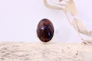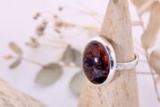 原石から切り出し、成形し、オーバルカボションに磨き上げたマホガニーオブシディアンのリングです。変わった物、鉱石の好きな方にいかがでしょうか。