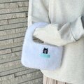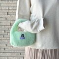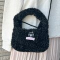 キラキラするクリアなふわふわが付いた糸で、持ち手まで丸まっているおとぼけミニバッグを作りました。