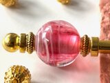 夏祭りのヨーヨーの様なピンクのマーブル模様のとんぼ玉でかんざしを作りました。