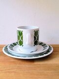 今はなきノルウェーの歴史ある陶器メーカー、EGERSUND(エーゲルスン)社製の「KORULEN」シリーズ、カップ&ソーサーとケーキプレートのセットです。