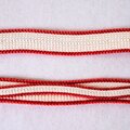 白色と赤色の蛇行する滑らかな曲線文様の帯締めをリメイクしました。