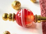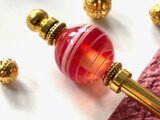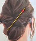 夏祭りのヨーヨーの様な赤のマーブル模様のとんぼ玉でかんざしを作りました。
