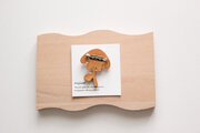 手書きでイラストを描き色付けし、表面に何度も樹脂を流して製作しています。