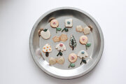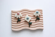 おはなの真ん中にはくすみブルーのビーズでおめかしを。