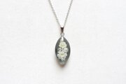 思っていたよりも、ペンダントトップが大きくて、私はこの位だといいなと思っていたので、とってもうれしくなりました!!お花が大好きで、特に白いお花が好きで、このネックレスには白いお花が入ってるので、大好きなお花を身につけられて、とってもうれしいです! 作って下さり、ありがとうございました。大切にします️