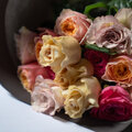 異なる花びらの質や香りのグラデーションが、深みと豊かな表情を印象付けるブーケです。
