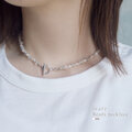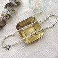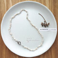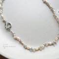 小粒な淡水パールと、淡いカラーの天然石を組み合わせた、ふんわりと優しい雰囲気のマンテルネックレスです。