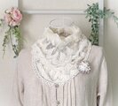 淡いグリーンのレース糸でアンティーク風のモチーフを編み、お花たちが可憐に咲いている様子をイメージしながら仕立てました。