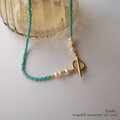淡水パール&ターコイズブルーのスリーカットビーズネックレス|上品×爽やかマンテルネックレス