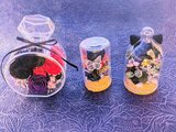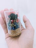 黒薔薇の魔法シリーズ 手の平サイズのガラスコルクの入れ物に、黒のミニ薔薇と金色の蝶々、赤いハート、小花を使用 ダーク感のある可愛さを表現した個性派ギフトです♡