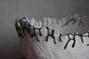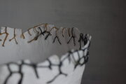 器の形をしていますが、水をたたえることはできません。オブジェとして飾っていただくか、乾燥した植物素材を入れて飾ってお楽しみください。中に小さな瓶などを入れて生花を飾っても綺麗です。