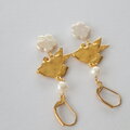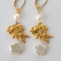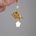 花の形をした雲の上でおどる金魚たちのピアスです。