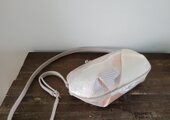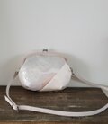 ショルダーベルトやがま口をくるんだ薄いピンクベージュの素材は、牛革です。