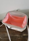 着物の帯を使って作ったがま口のショルダーバッグです。
