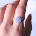 商品画像や説明の通りで、素敵なリングでした。氷ひすいの優しい色と、アームは実は仏さまがいるという、個性的なデザインに惹かれました。また、仕上げの艶消し加工が本当に綺麗です。指にスッと馴染み着け心地も良いです。たいへん気に入りました。大切にします。丁寧なご対応もありがとうございました。