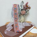 ビジュー付きリボンは土台リボンの真ん中あたりに縫い付けています。