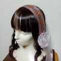 幅広オーガンジーリボンにビジュー付きリボンを重ねた、お出掛けにもピッタリな、結んで使うヘアバンドです。