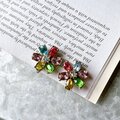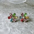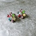 カラフルなラインストーンが煌めく、シルバートーンフローラルイヤリング。