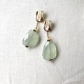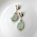 不揃いの大きめミントブルーカルセドニーのソフトタッチイヤリングです。