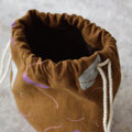 ひも部分は生地に直接穴を開けたワイルド仕上げとなっておりますが、ほつれなどの使用上の問題はありません。