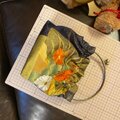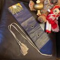 【和洋折衷 名古屋帯リメイク ハンドバッグ バック ショルダーチェーン付き ガマ口タイプ 帯サッシュベルト セット 深藍に、季節を咲かせて。あ-94】
